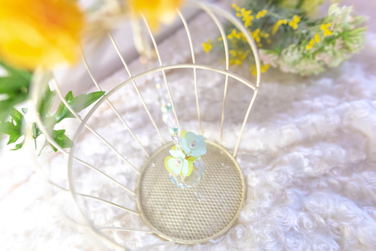 机やテーブル、お好きな所に置いて虹の光を楽しめる卓上フラワーサンキャッチャー。カラフルな色合いが心を華やかにしてくれます。
