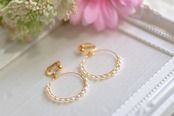 川で採れた真珠を、出来る限り同じようなサイズ・形を使って、イヤリングに仕上げました。